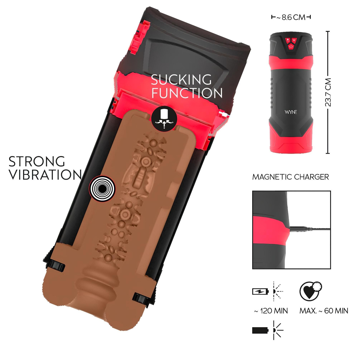 Δες το βίντεο παρουσίασης για το WYNE 04 - επαναφορτιζόμενο, δονητικό και με αναρρόφηση masturbator (μαύρο-κόκκινο)!