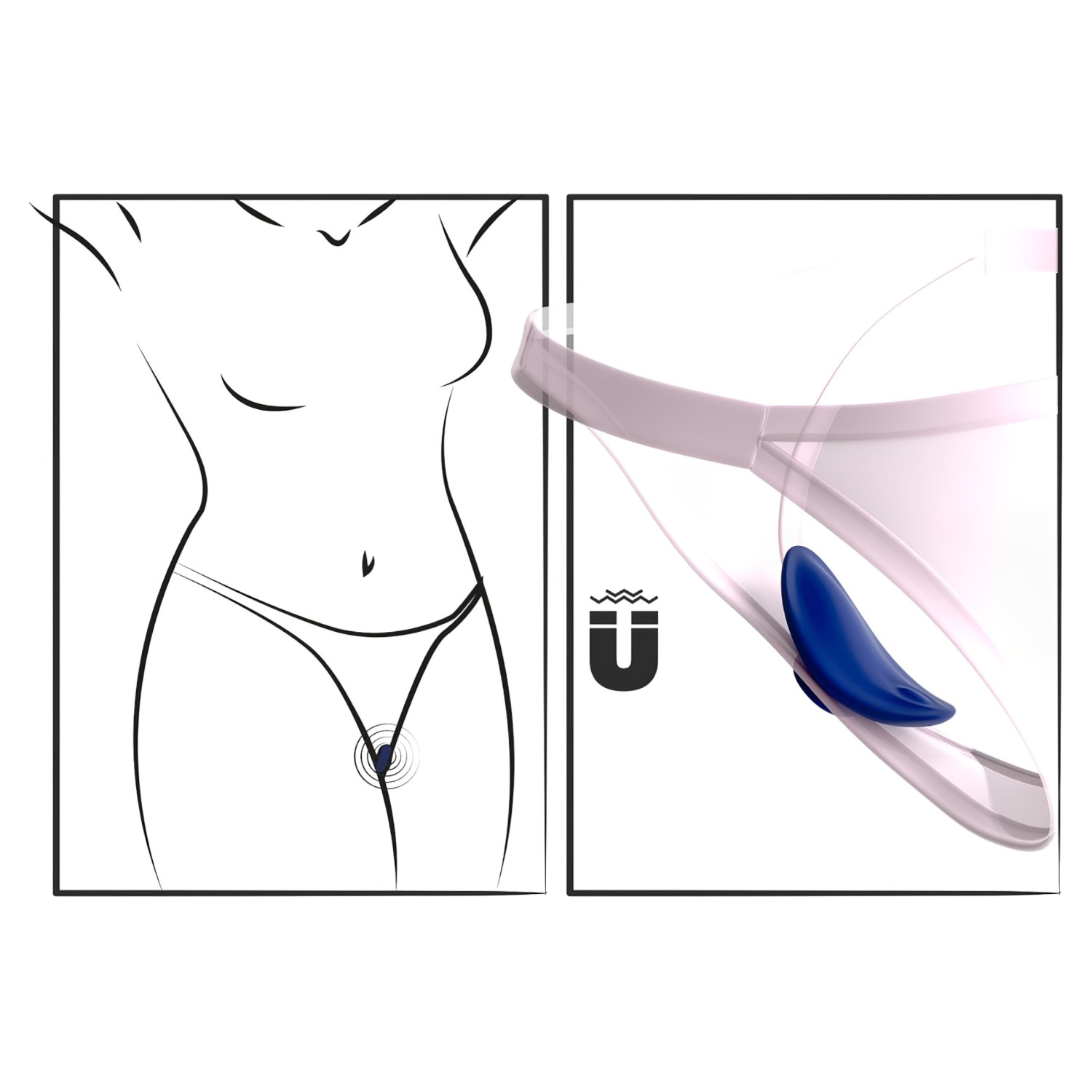 • Βάλε το δονητή μέσα στο εσώρουχο φροντίζοντας να στερεωθεί σωστά με τον μαγνήτη