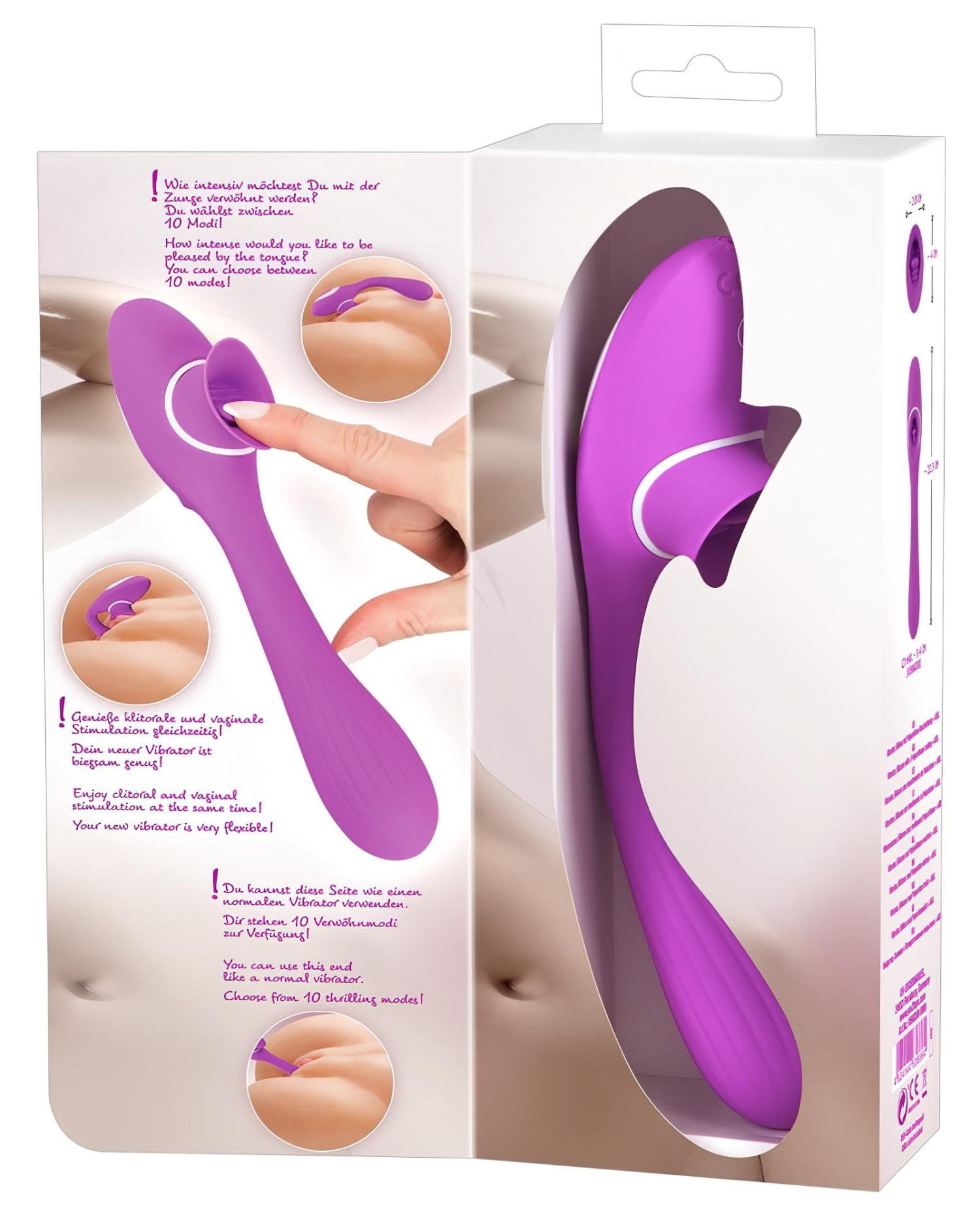 Ένα δύο σε ένα γλειφομηχανή και δονητής: διπλή απόλαυση με δόνηση και γρήγορες, αισθησιακές κινήσεις γλώσσας!