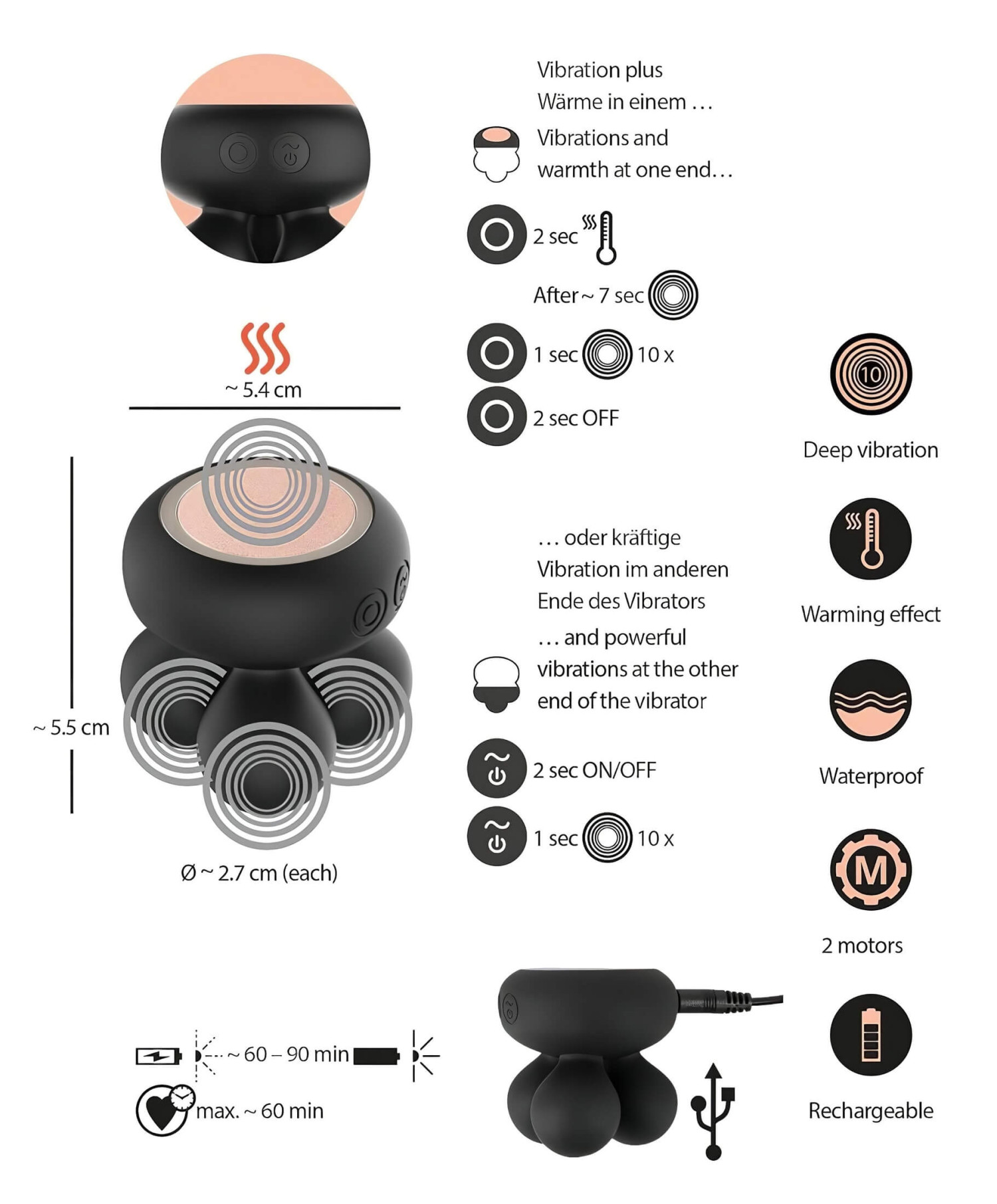 Mini μασάζ-δονητής με ΤΕΣΣΕΡΙΣ δυνατούς κινητήρες και λειτουργία θέρμανσης.