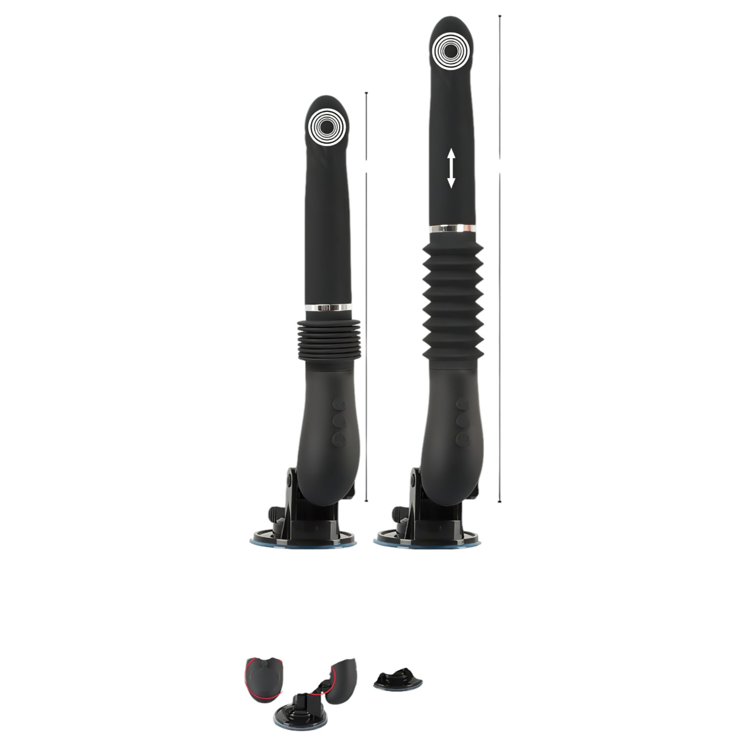 Άνοιξε το σιλικονένιο καπάκι κάτω από τη σήμανση CE, βάλε τις πλαστικές προεξοχές της βάσης στο δονητή, ρύθμισε τη γωνία και κλείδωσε από το πλάι. Σταθεροποίησε στη θέση σου με τον μοχλό της βεντούζας.