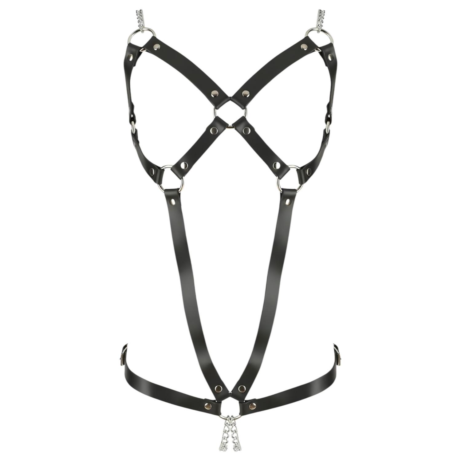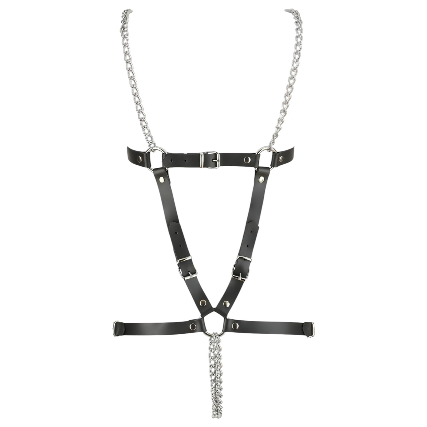ZADO - Δερμάτινο σώματος με αλυσίδες - μαύρο (S-L)