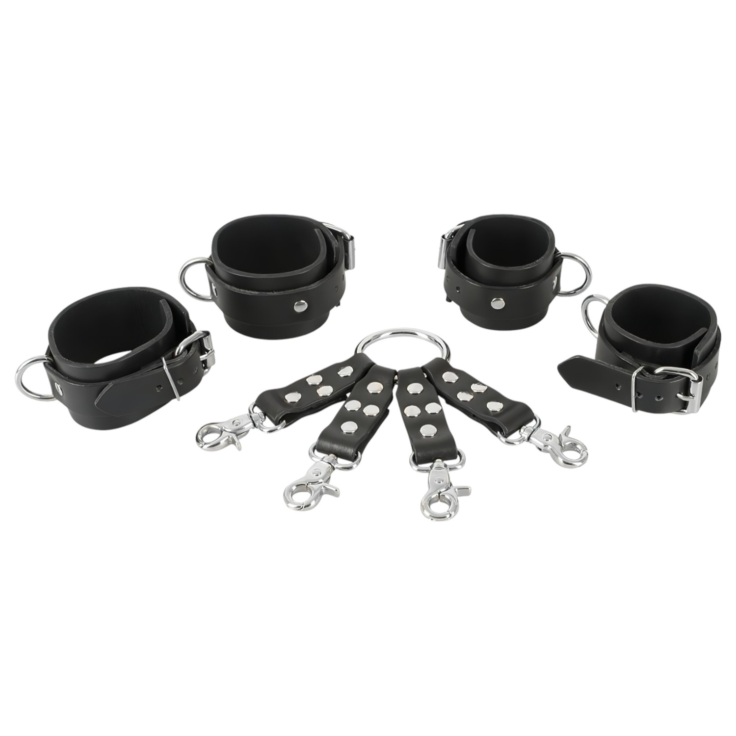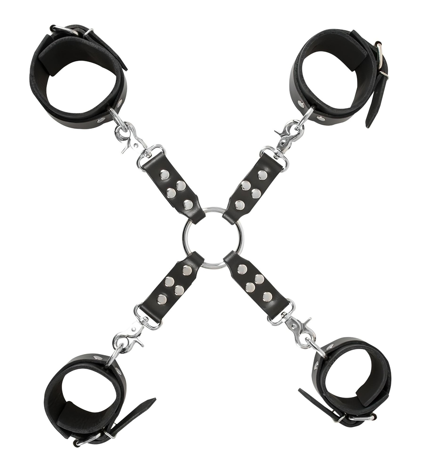 ZADO - Σετ χειροπέδες και γονατοδέτες με σταυρωτούς ιμάντες (μαύρο)